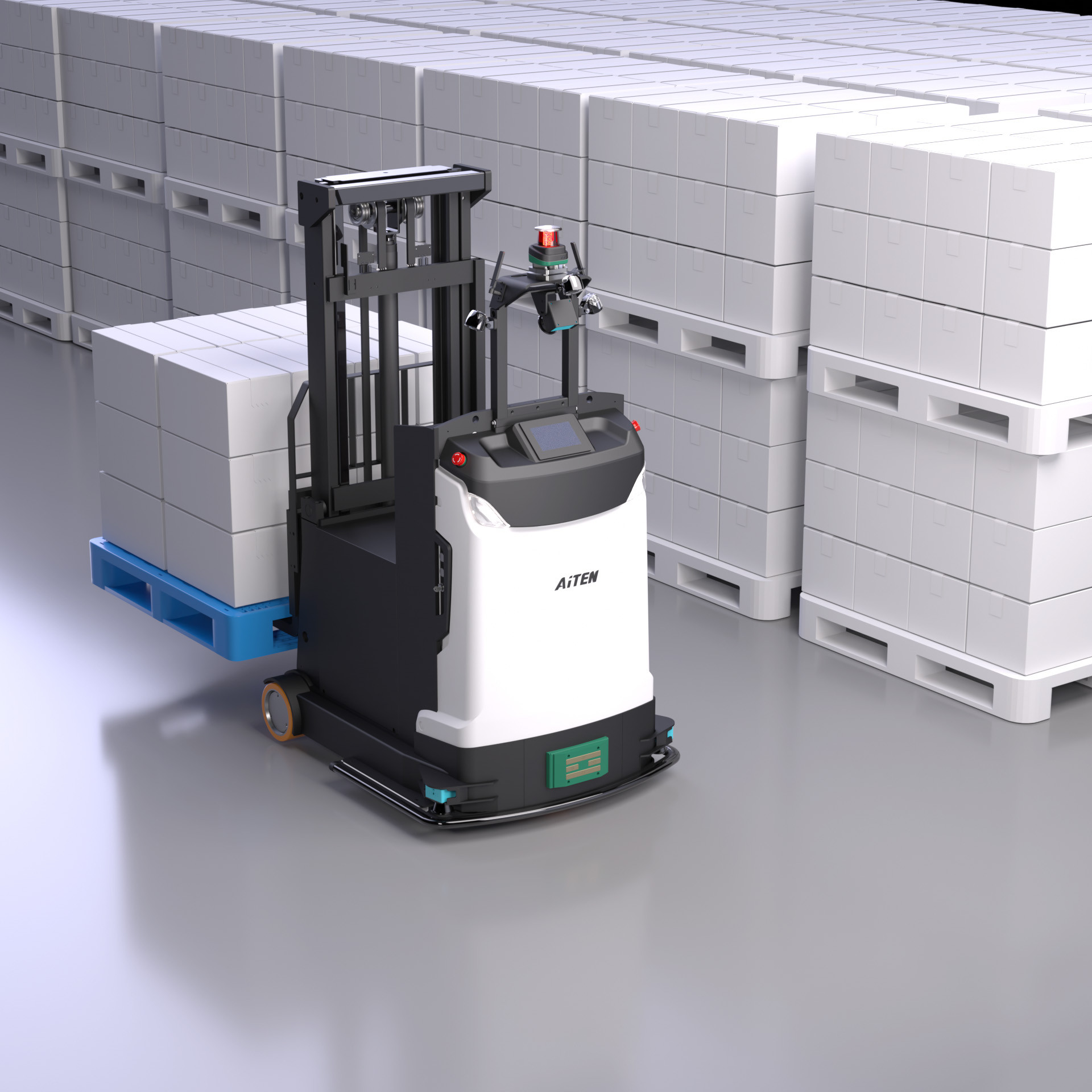 2.典型场景:既适用于生产环节中的托盘产线配送,确保各个环节实现高效物流衔接,也适用于堆叠和高架货物搬运,轻松完成高位货架的货物存取操作。